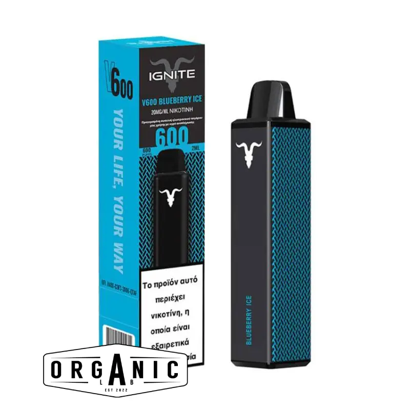 Ηλεκτρονικό τσιγάρο μιας χρήσης με άρωμα bluberry ice.